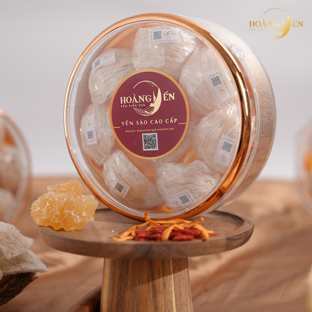 • Tinh tuyển nguyên liệu, hương vị hài hòa: Hoàng Yến chỉ chọn những tổ yến chất lượng nhất, kết hợp cùng đường phèn ngọt thanh và đông trùng hạ thảo, tạo nên sản phẩm vừa ngon miệng vừa bổ dưỡng.