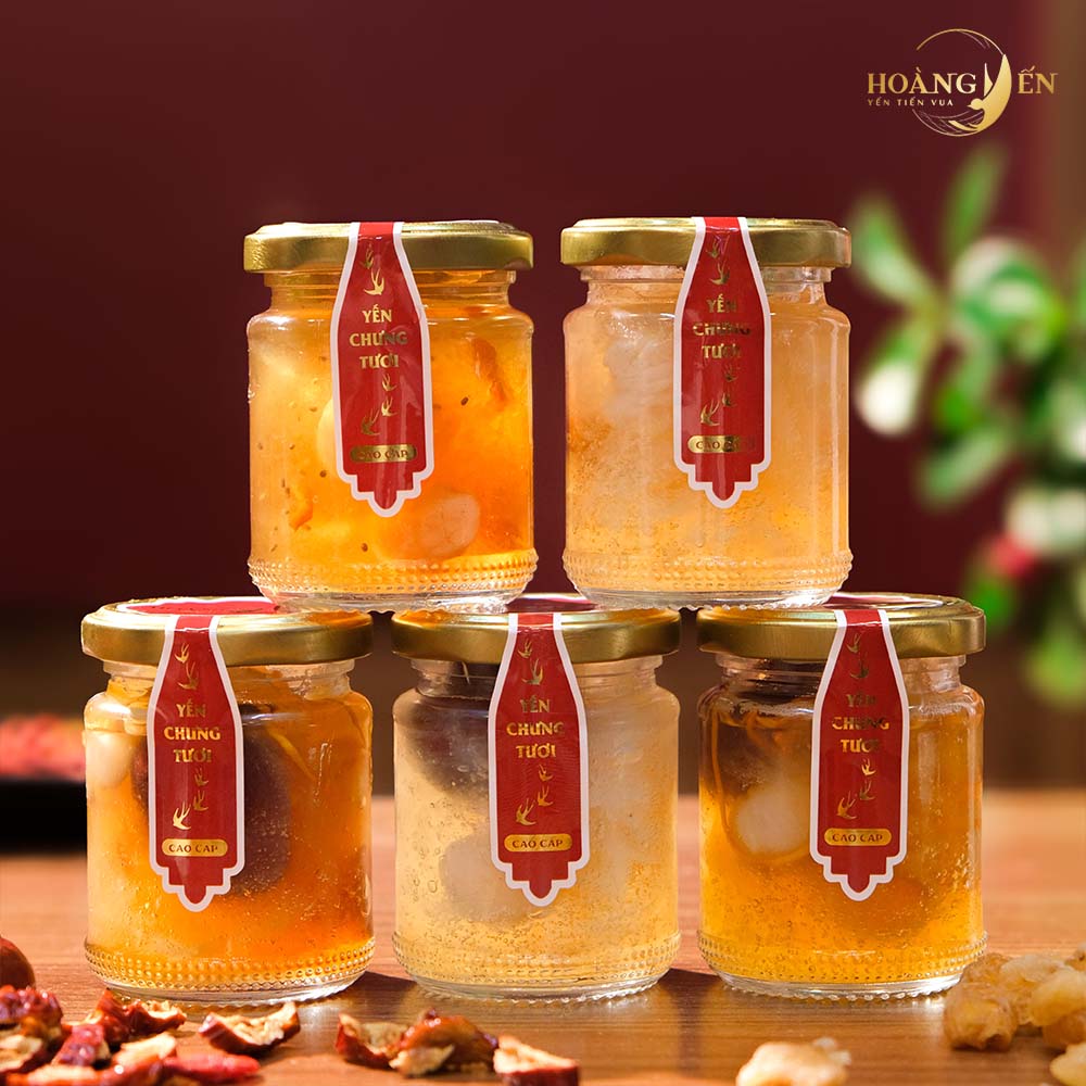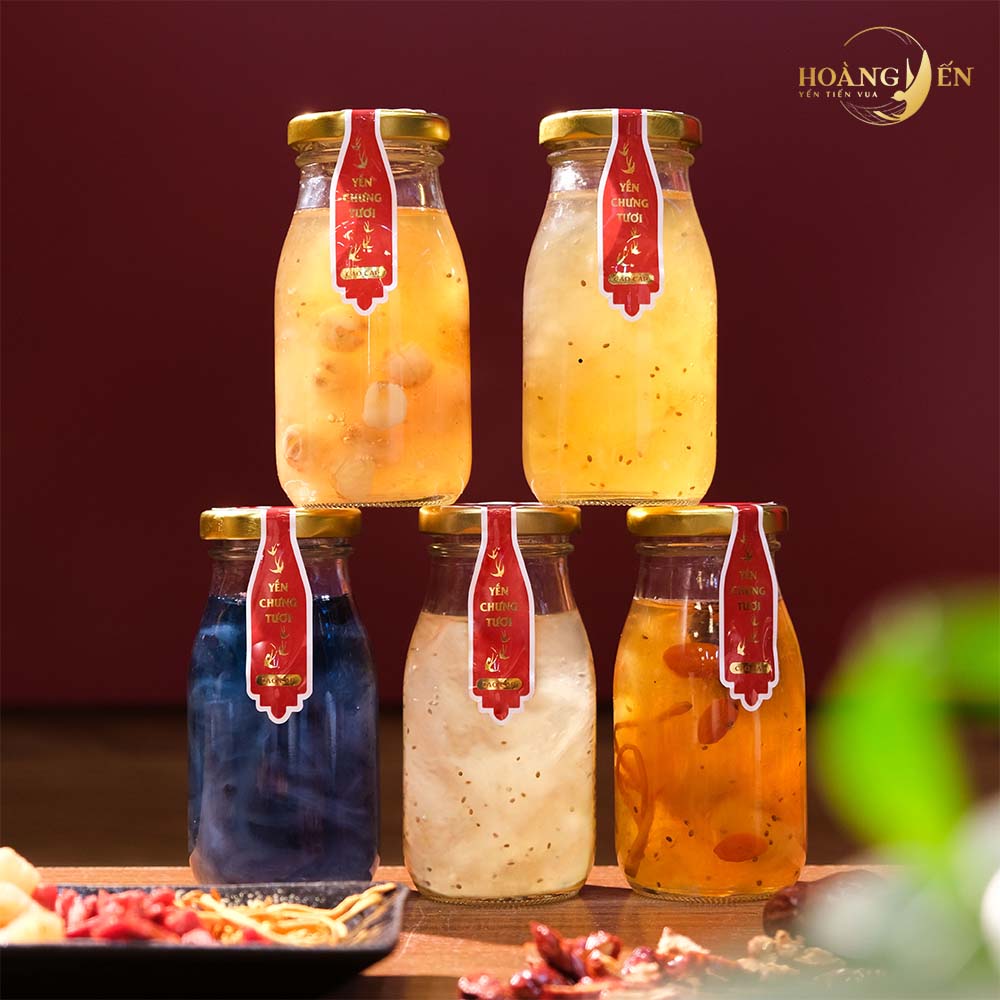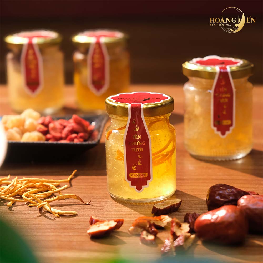 Yến Chưng Tươi Đông Trùng Hạ Thảo Yến Sào Hoàng Yến là sự kết hợp quý giá giữa yến tươi nguyên chất và đông trùng hạ thảo. Với sự tinh tuyển và kiểm soát chặt chẽ, Hoàng Yến mang đến sản phẩm bổ dưỡng, giúp nâng cao sức đề kháng và cải thiện sinh lực.
